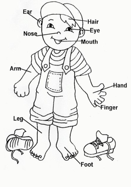 Il primo in cui vengono indicate con le frecce le parti del corpo di un bimbo; in questo caso genitori il mio consiglio è di chiedere ai bimbi di colorare una determinata parte per volta.